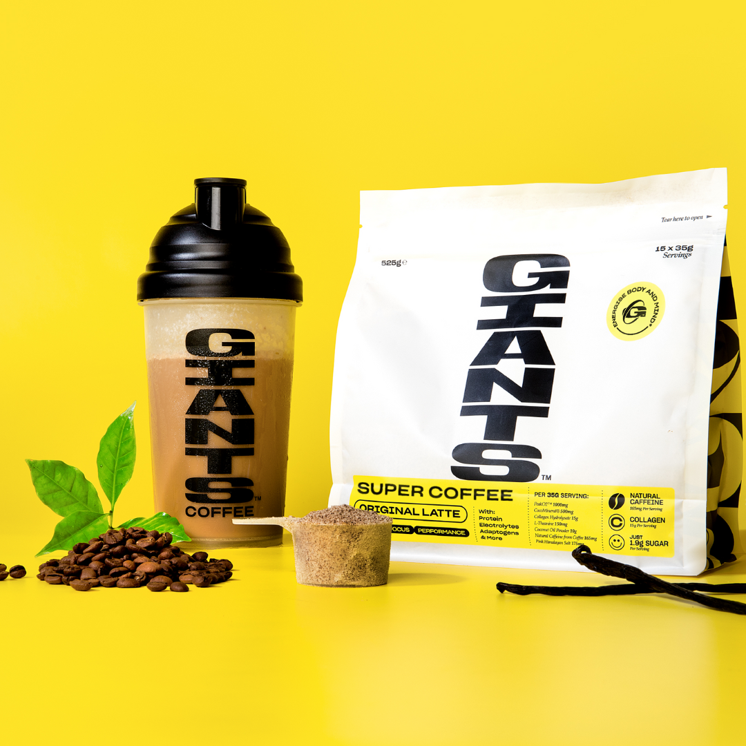 Most coffee leaves you wired, anxious, or flat by 2 p.m. We fixed that. GIANTS™ combines real coffee, collagen protein, vitamins, adaptogens, and extended-release caffeine for clean energy, calm focus, and zero crash.